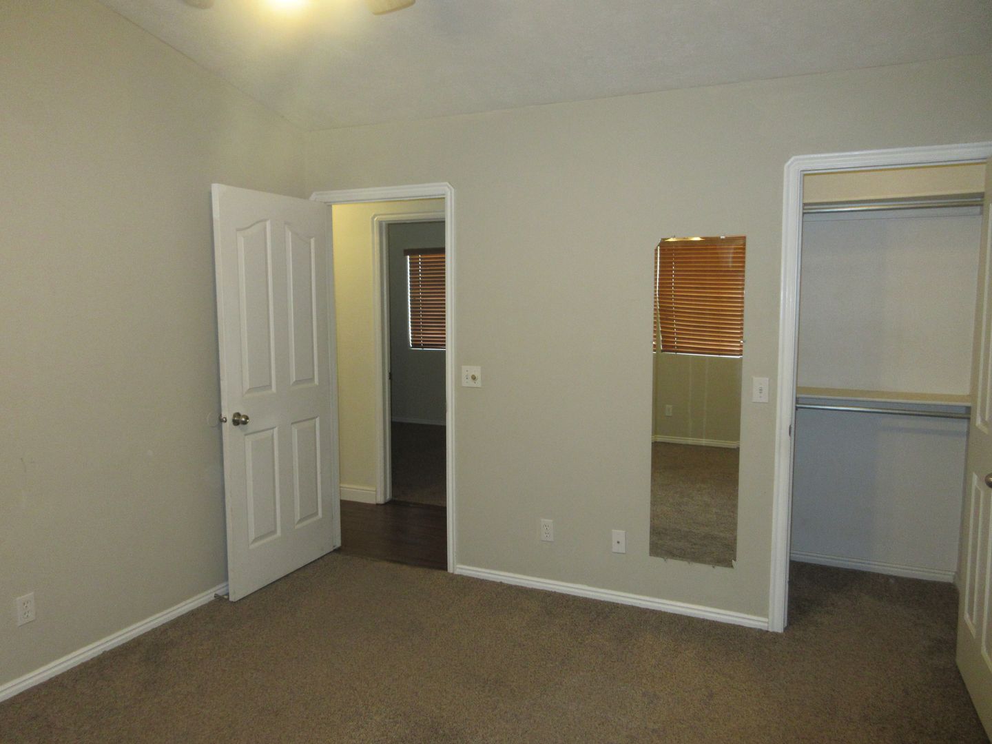 Laminate floors in living room with carpet in all bedrooms.